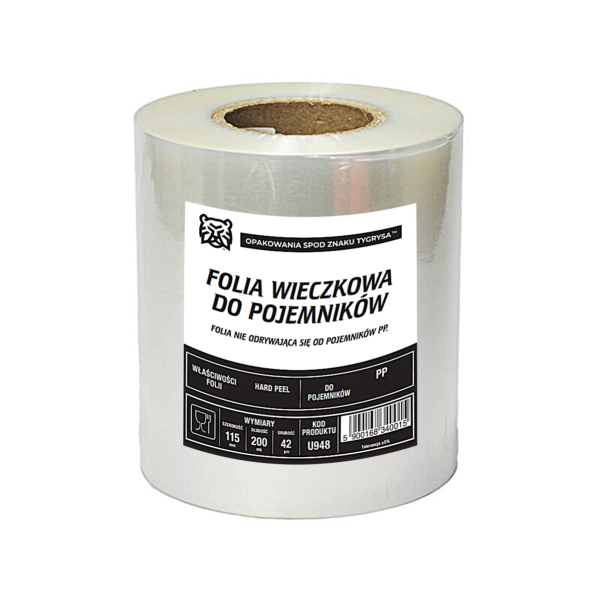 Folia wieczkowa, barierowa, transparentna - wykonana z folii PET/PE o szerokości 115mm i długości 200 metrów bieżących. Służy do zgrzewania i zamykania pojemników PP. Folia nie odrywająca się od pojemników !!! Idealna do zgrzewania wszystkich pojemników wykonanych z polipropylenu PP Folia używana głównie do zgrzewania kubków Bubble Tea Temperatura zgrzewu od 140 stopni do 170 stopni Grubość 42 mikrony Kod : U948 Szerokość rolki 115 mm Długość 200 mb