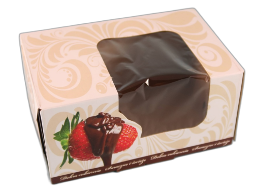 • Kartonik biały na ciastka z okienkiem nadruk ornament 165/110/80