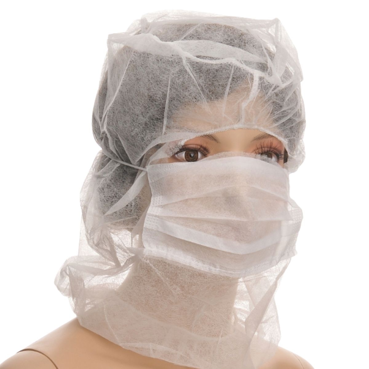 Czepek AstroCap wykonany z włokniny PP z maską dwuwarstwową na usta w kolorze białym. Zapewnia pełna ochronę produktu i pracownika. Maseczka wyposażona w modelującą wkładkę na nos oraz kaptur z włókniny.