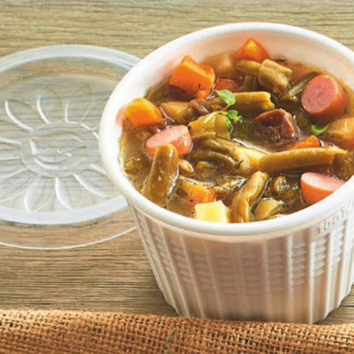Opakowanie wykonane ze spienionego polipropylenu. Zatrzymuje ciepło na dłużej podobnie do opakowań styropianowych. Certyfikat wielokrotnego użytku.